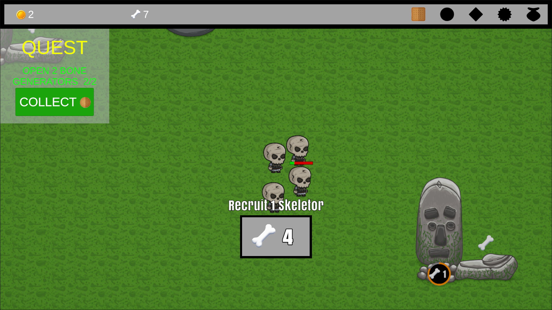 🦴 Collect bones and gold: Use your loot to unlock new producers and new skeletons.